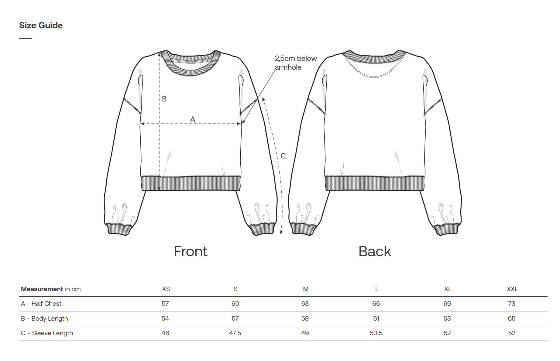 Guide des tailles :